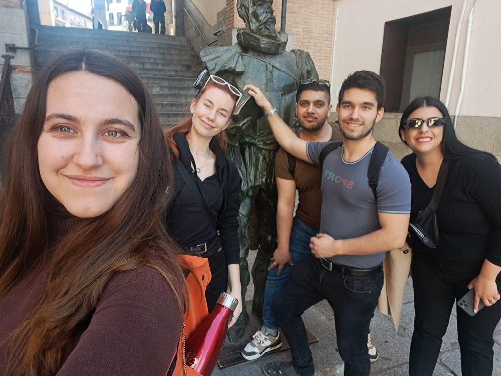 Amikor befejeztük a tevékenységünket, kávészünetet tartottunk. A kávé nagyon jó volt, de forró, így az egész 30 percet azzal töltöttem el, hogy vártam míg kihűl. A sajtos kekszek és a lekváros kekszek nem voltak rosszak, de mégse a legjobb. Amikor visszatértünk a tárgyalóba, végül megcsináltuk a feladatot, amit még az érkezés előtt el kellett küldenünk, az egyesületünk bemutatását. Az első csapat a mediterrán csapat volt, Chiara, Laura és Carolina (mediterrán, mert Portugáliából, Spanyolországból és Franciaországból valók), bemutatták a videójukat, amelyben az egyesületükről beszéltek, honnan jönnek, mit csinálnak, kikkel osztoznak a szobákon stb. stb. Ők voltak a legszerencsésebbek, mert egy órányi buszútra éltek Bukaresttől, így minden hétvégén felfedezhették a nagyvárost. A második csapat a Baia Mare csapat volt, Zeynep és Bogdan. Ugyanezt csinálták, beszéltek és beszéltek, az ő egyesületük nagyon menő tevékenységeket csinál, például minden héten egy ünnepet kell készíteniük, vagy egy hetet egy adott témában, például meséltek arról, hogy Harry Potter tematikájú hetet készítettek, ahol iskolákban, fogyatékos központokban stb. végeztek tevékenységeket. A harmadik csapat Oussama, Diana és Tasnim volt, Seserice vagy Eferice-ből vagy valami ilyesmi, nem emlékszem őszintén, de ők is szuper király tevékenységeket csináltak, és az egyik, ami nagyon jó volt, hogy bölcsődében segítettek, ahol 1-től 3 éves gyerekekre vigyáztak. A negyedik csapat a temesvári csapat volt, Benjamin, Anna és Iasmina, és hasonló tevékenységeket végeznek, mint mi, ketten szerbek és egy román, és ők szerb-román határon élnek, így tudnak románul beszélni! És végül, de nem utolsósorban mi jöttünk, természetesen, Abde, Murat, Undine és Alejandro. Keresztúrt és az ATÁT képviseltük és mutattuk be. Sok mindent csinálunk, amit, ha szeretnél elolvasni, nézd meg a blogot, ahol ezt olvasod hihi. És hogy befejezzük a napot, az ebéd! Az ebéééééd! 13-kor, mint a britek, az ebéd nem volt valami kielégítő, határozottan nem. Most muszlimként beszélek, csak csirkeszárnyak és saláta volt, minden más sertés. És azok voltak a finom dolog, mint a krumplisaláta SERTÉSHÚSSAL, SERTÉSHÚS krémes szószban, SERTÉSBORDA, emellett a csirkeszárnyak bármilyen szósz nélkül, a saláta pedig olajjal és sóval.